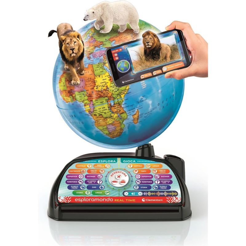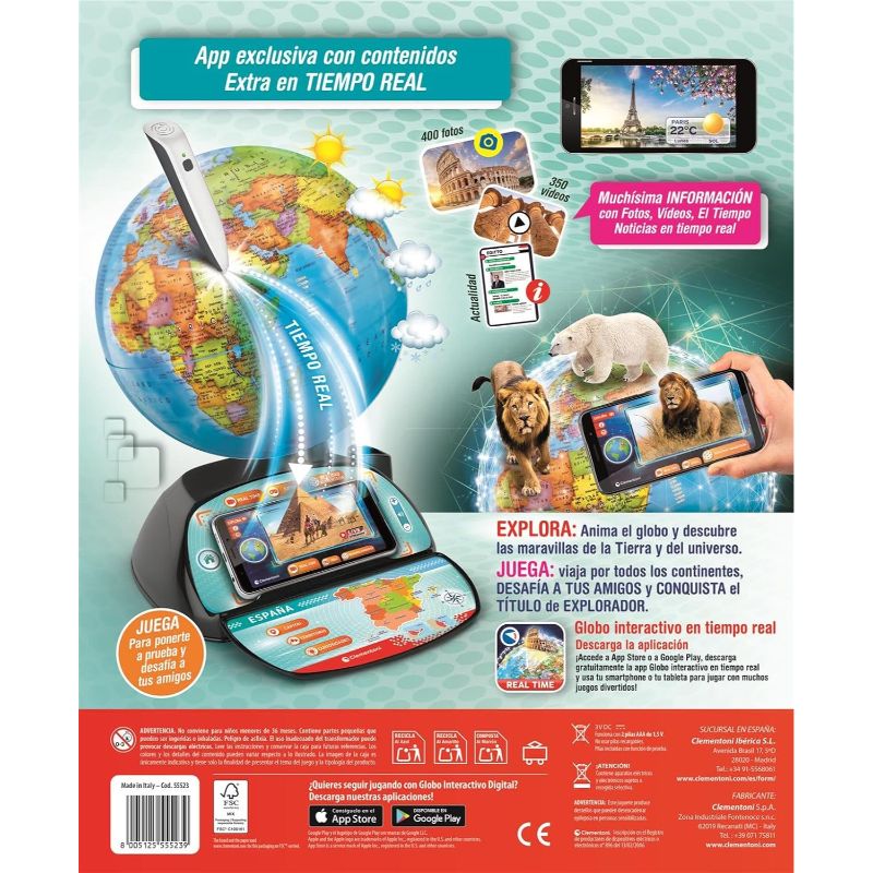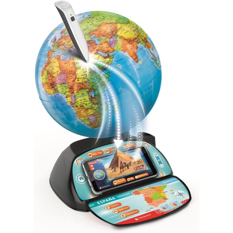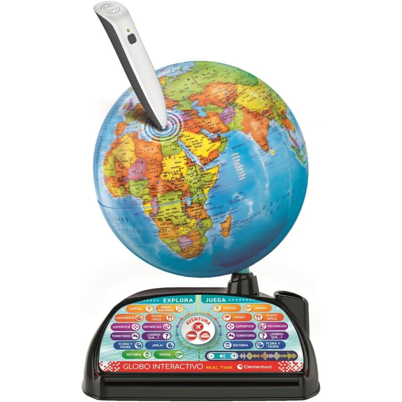 Descobreix el món d’una manera divertida i educativa amb el Globo Interactiu Real Time de Clementoni. Gràcies al seu bolígraf digital i a les actualitzacions en temps real, els infants poden explorar països, capitals, curiositats, cultures i molt més. Inclou jocs, qüestionaris i connexió amb aplicacions digitals per aprendre geografia de forma immersiva i interactiva. Ideal per estimular la curiositat i el coneixement del món!
