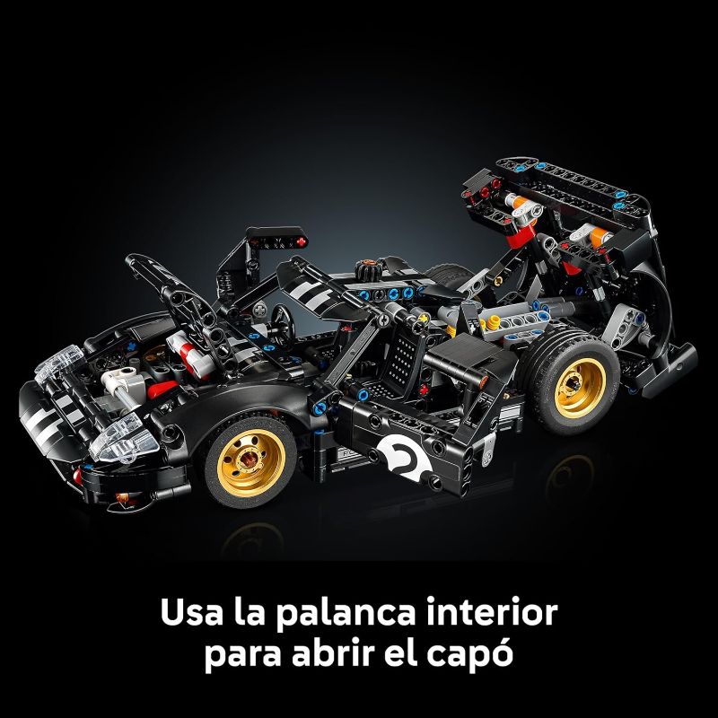 Un set Lego Technic per a adults inspirat en el clàssic cotxe de curses Ford GT40 MKII de 1966. Conté 793 peces per muntar una maqueta detallada amb direcció funcional, portes i capó que s’obren i un motor V8 visible un cop construït, tot amb la decoració negra i platejada de l’original. És ideal com a peça d’exposició o regal per a aficionats als cotxes icònics i a construccions tècniques complexes.